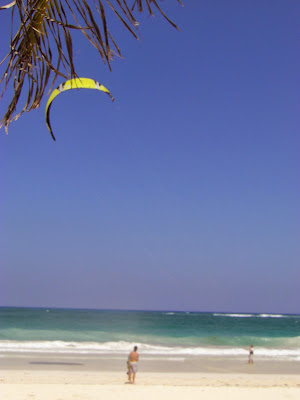 Encore une journée très calme : plage, bronzette et un essai de kite pour Fred, mais le vent n'est pas au rendez-vous. Dommage !